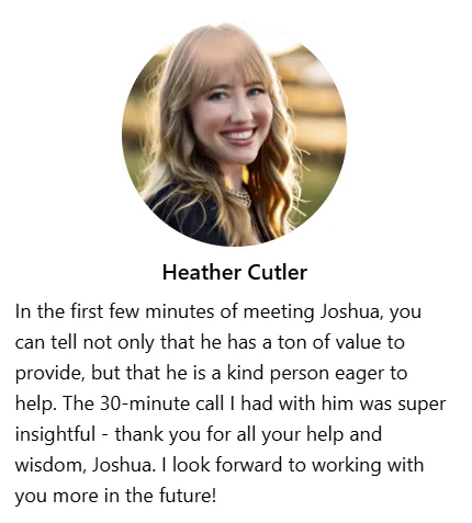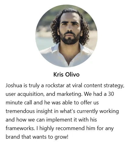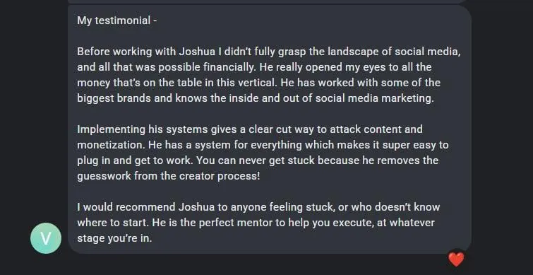 "Joshua helped me discover my unique value and showed me exactly how to monetize it on social media. I went from $2K to $12K monthly in 90 days."